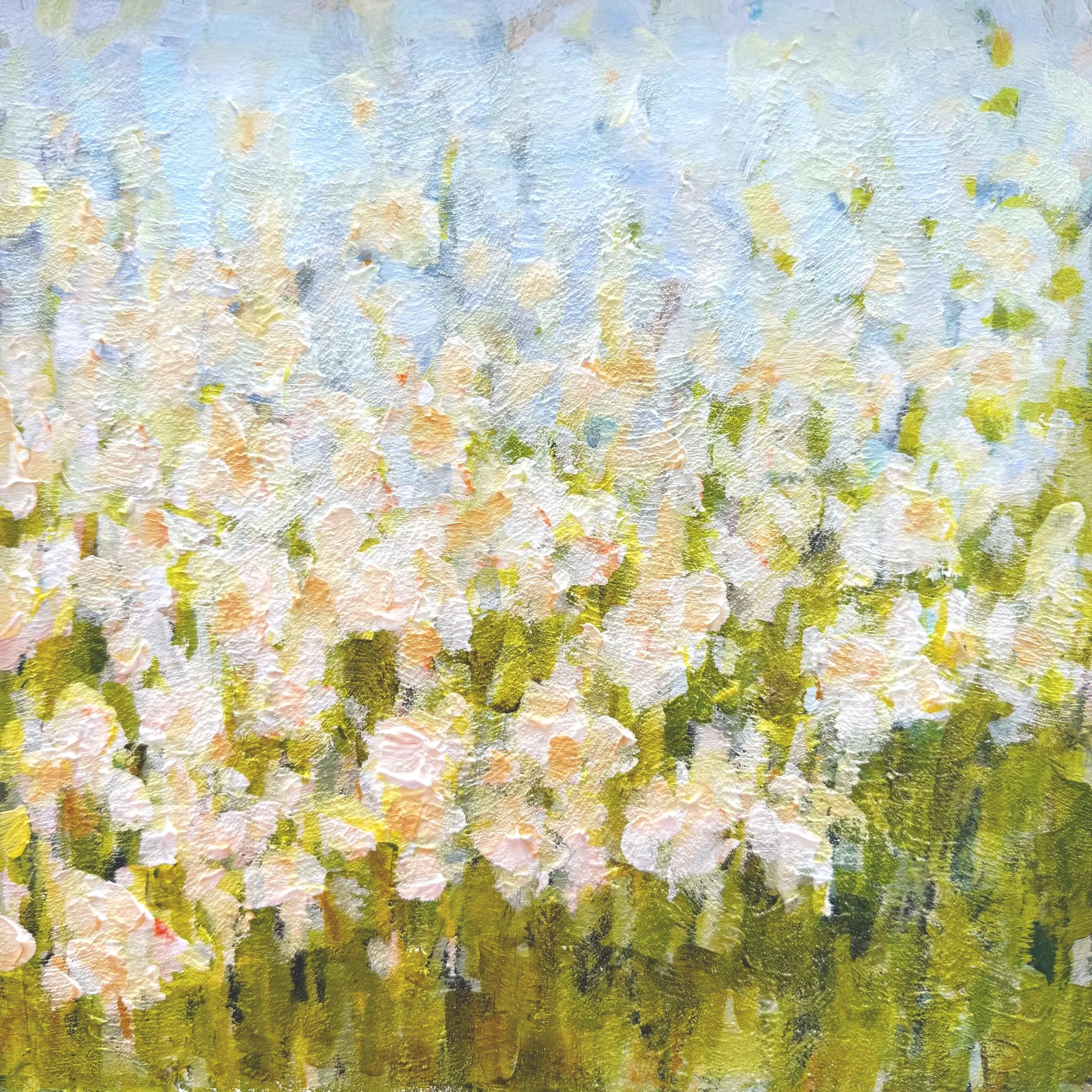 ‘Having lived in Cornwall for most of my life, the vast skies and changing light are intrinsic to my work. A sense of belonging which shapes the process of layering colour and texture creates the illusion of elemental movement. The colours I use are selected and applied in a way that is both methodical and meditative. I work on several pieces at the same time and this keeps the marks I make fresh and expressive. I am inspired by the emotional connection we have to our surroundings and much of my work is reminiscent of our sense of place.’