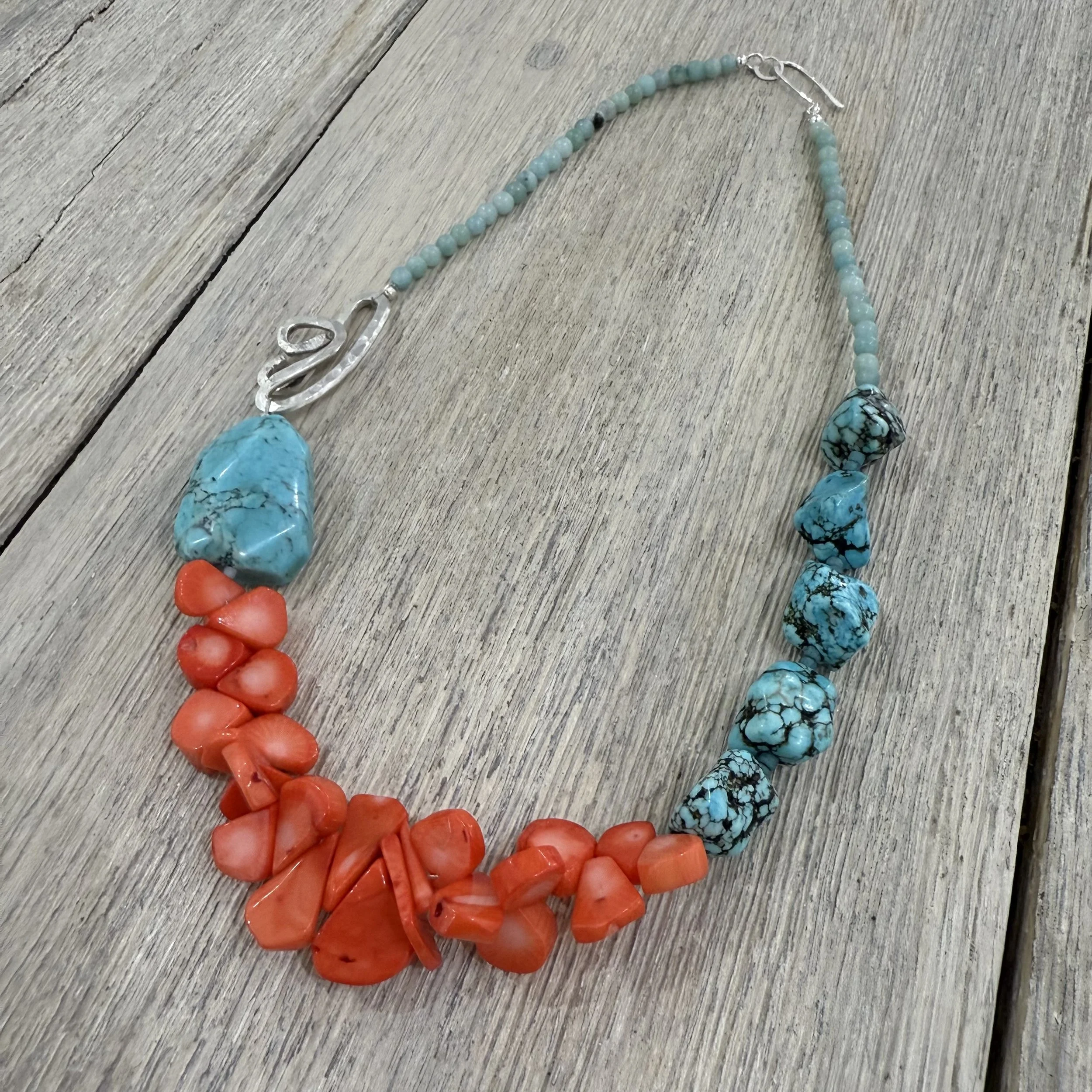 Seaglass, Kiwi Jasper, Turquoise and Silver Accent Necklace